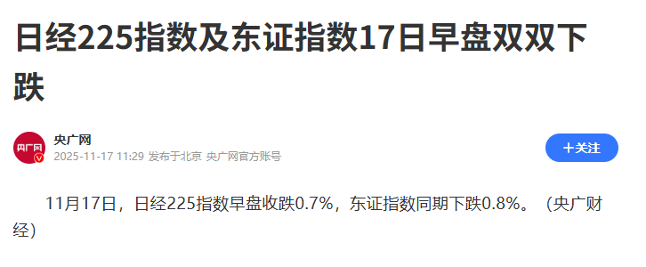 资本市场对此作出了敏锐反应。11月17日东京股市的表现尤为引人注目:日经225指数开盘即出现明显下跌,一度跌幅超过1%,跌破50000点心理关口。旅游相关板块遭受的冲击更大,全日空和日本航空股价下跌3%-4%,阪急阪神控股跌幅超过2%。消费品板块的波动更为显著,资生堂股价暴跌超过11%,三越伊势丹跌幅超过10%,其他如Oriental Land、迅销等企业股价也出现不同程度下滑。